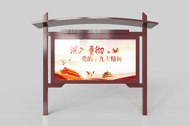 宣傳欄是一種VI應(yīng)用,是組織或企業(yè)單位等進(jìn)行自我宣傳的有效手段,常被應(yīng)用于街道,工廠等公共場所;一般采用不銹鋼為框架,鋼化玻璃或者耐力板為面板,鋁合金為頂棚,面板可以打開更換宣傳畫面。現(xiàn)如今,宣傳欄廣泛應(yīng)用于學(xué)校、小區(qū)、會議館、展廳等各個場地。